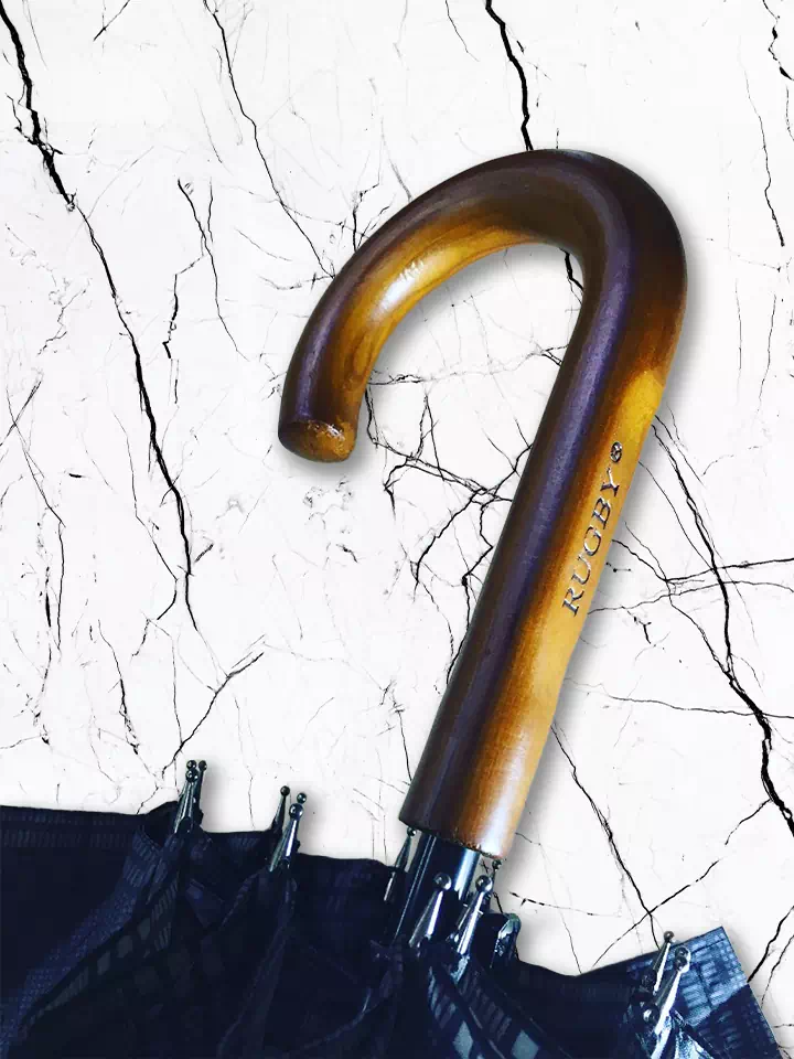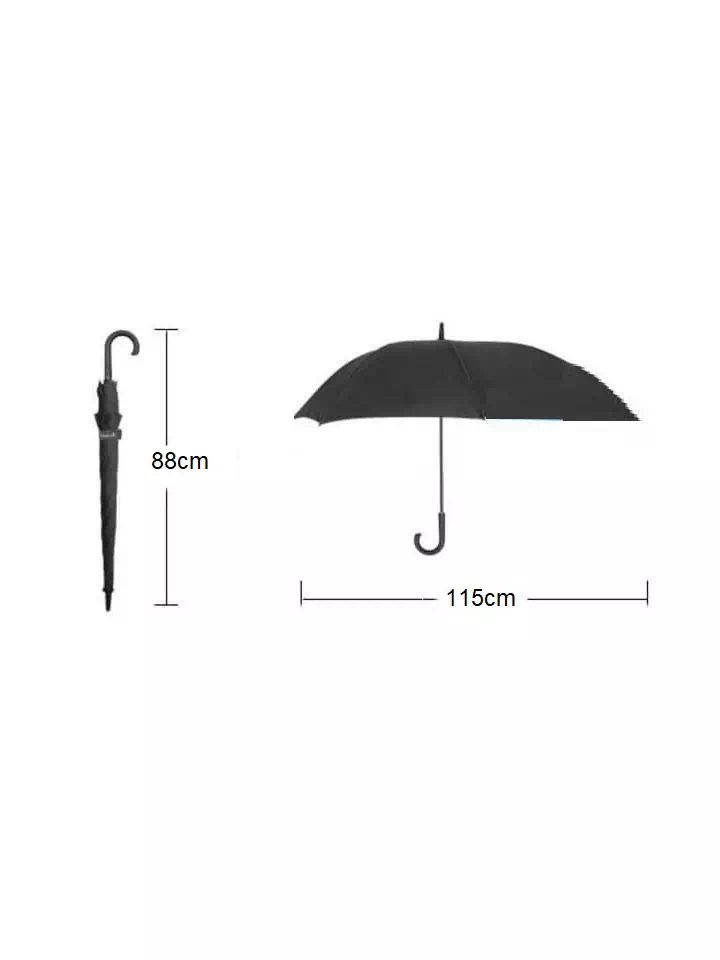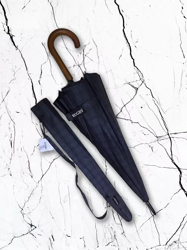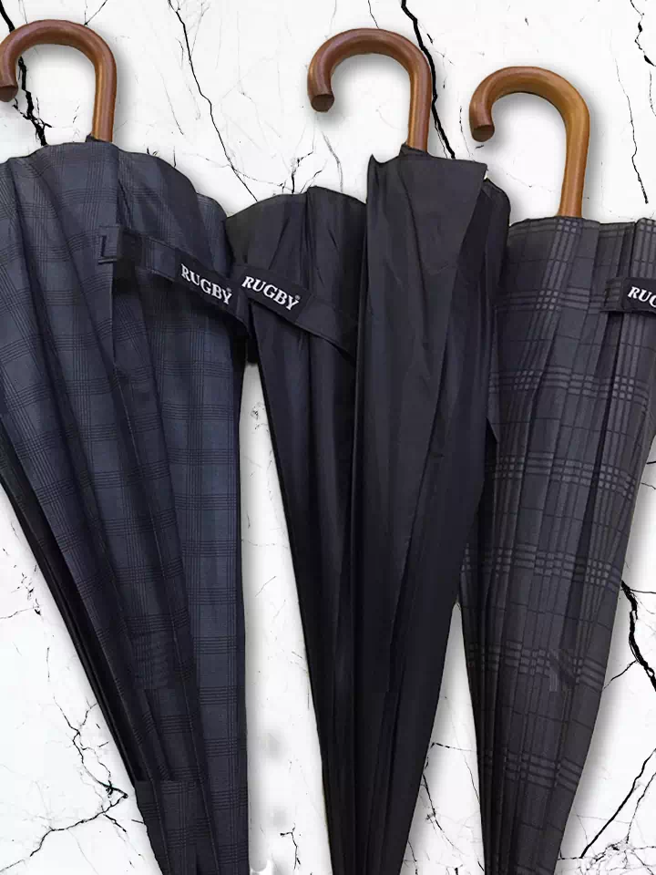 16 Wire Automatic Cane, Polyester Black and Plaid Fabric, Wooden Handle