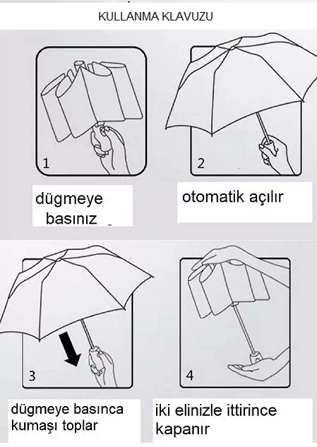 8 Tel Tam Otomatik, 3 Katlamalı Tam Otomatik Aç-Kapa, Pongee Renkli ve Baskılı Kumaş, Rubber Kol
